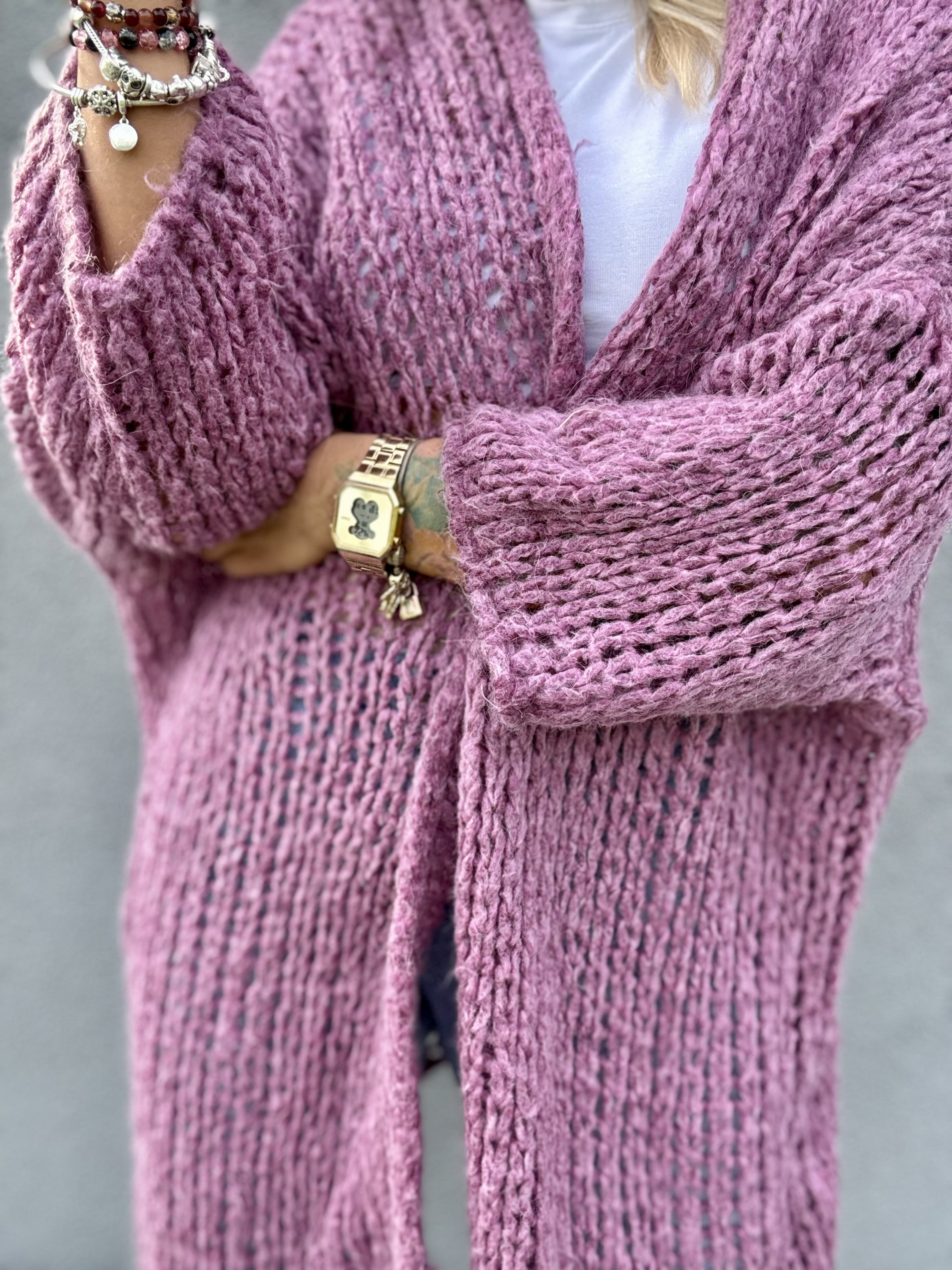Kardigan /Sweter damski midi o luźnym splocie. Nie gryzie.