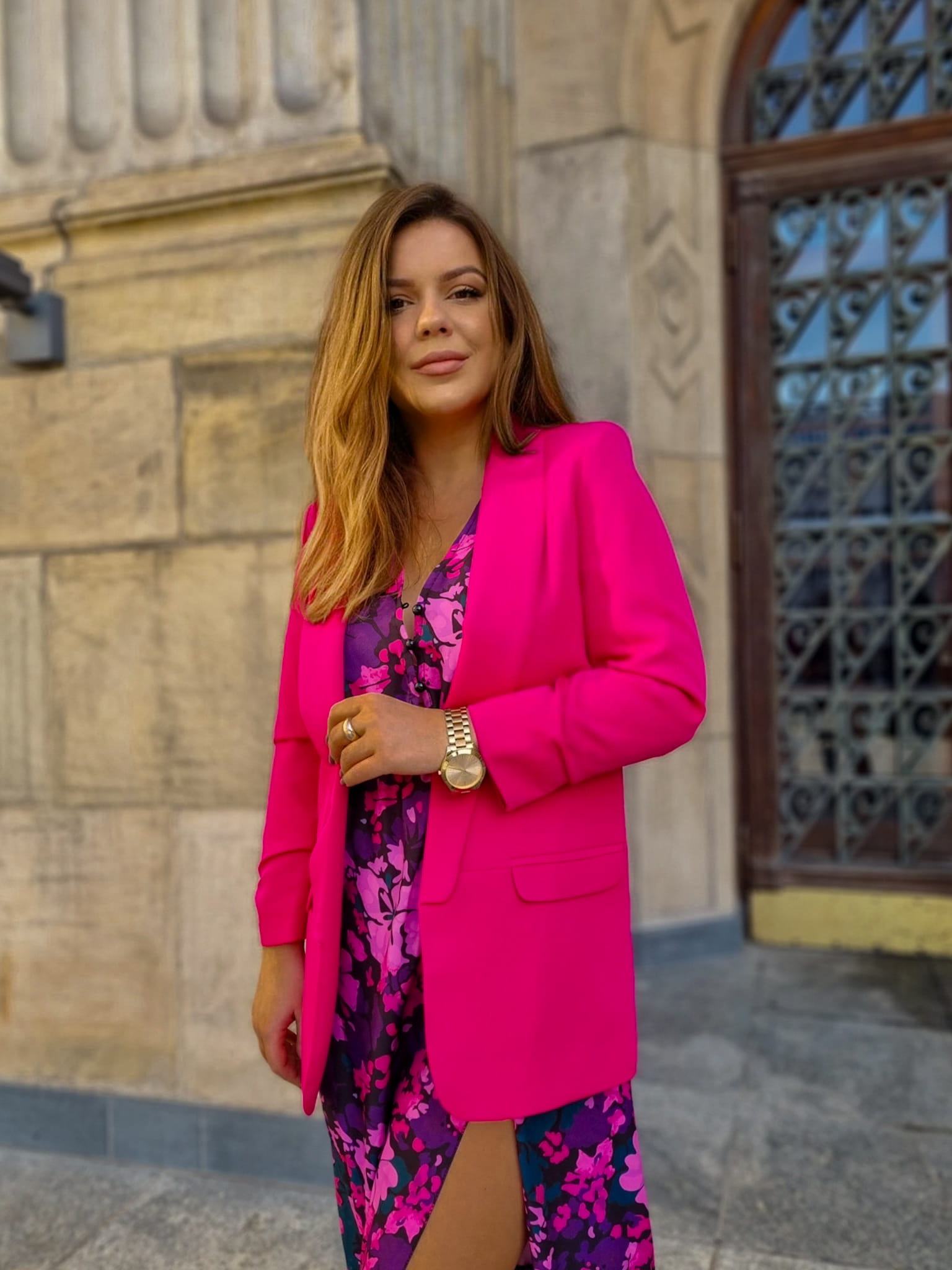 Klasyczna marynarka damska bez zapięcia - malina