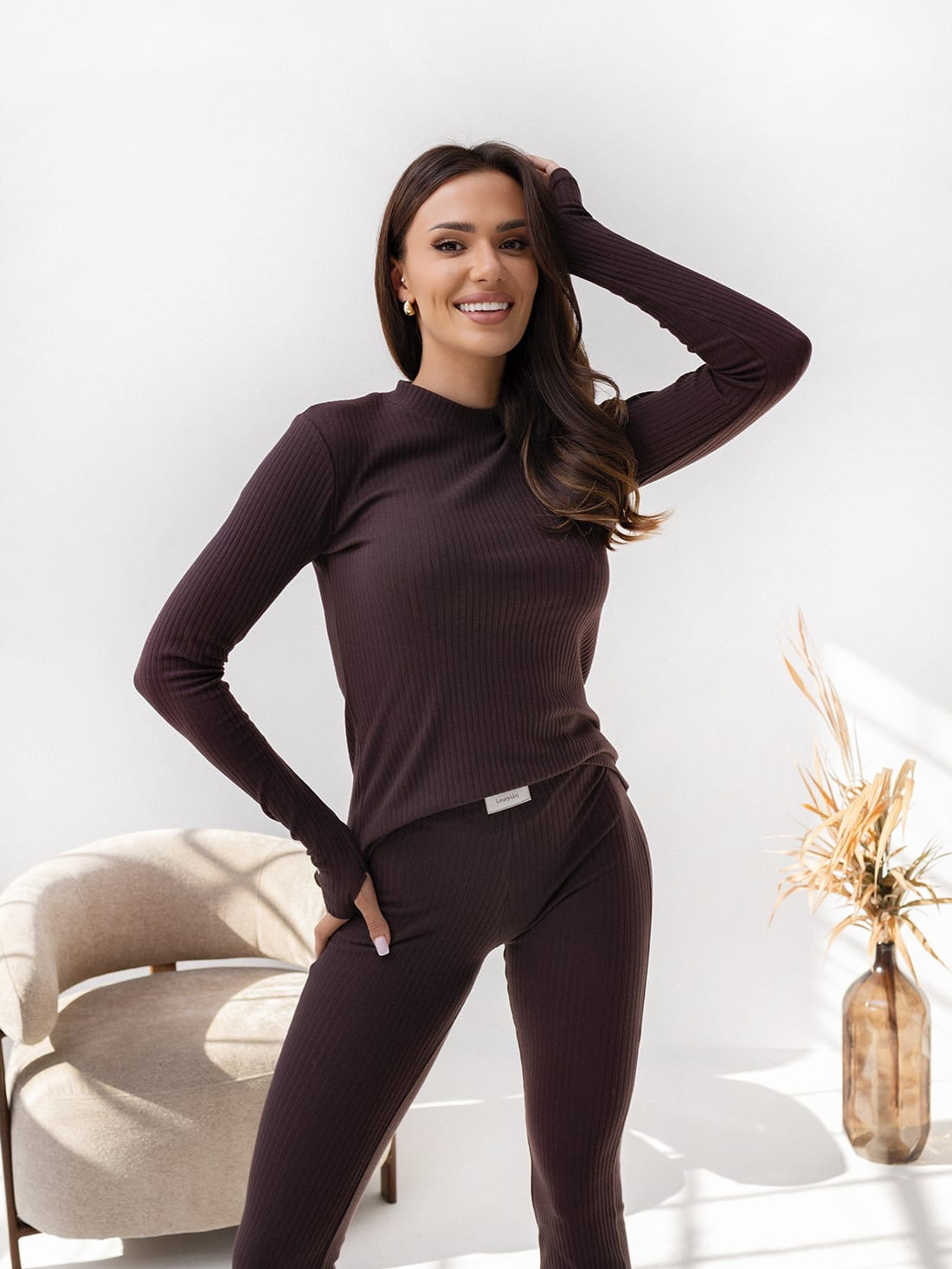 Komplet damski bluzka i leginsy dzwony Malaga (czekolada)