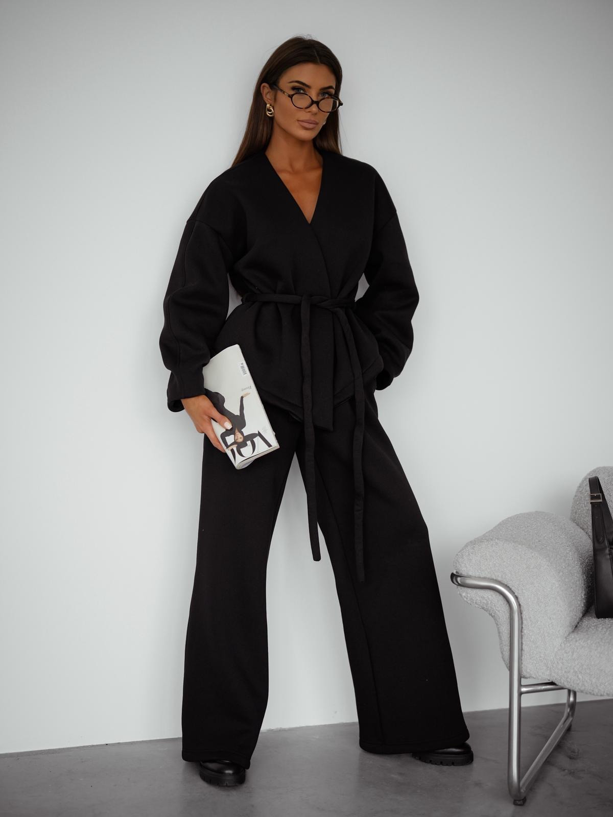 Bardzo wygodny, komplet damski. Bluza kopertowa. Spodnie z szeroka nogawką gumka w pasie. W nim na pewno będzie Ci wygodnie.