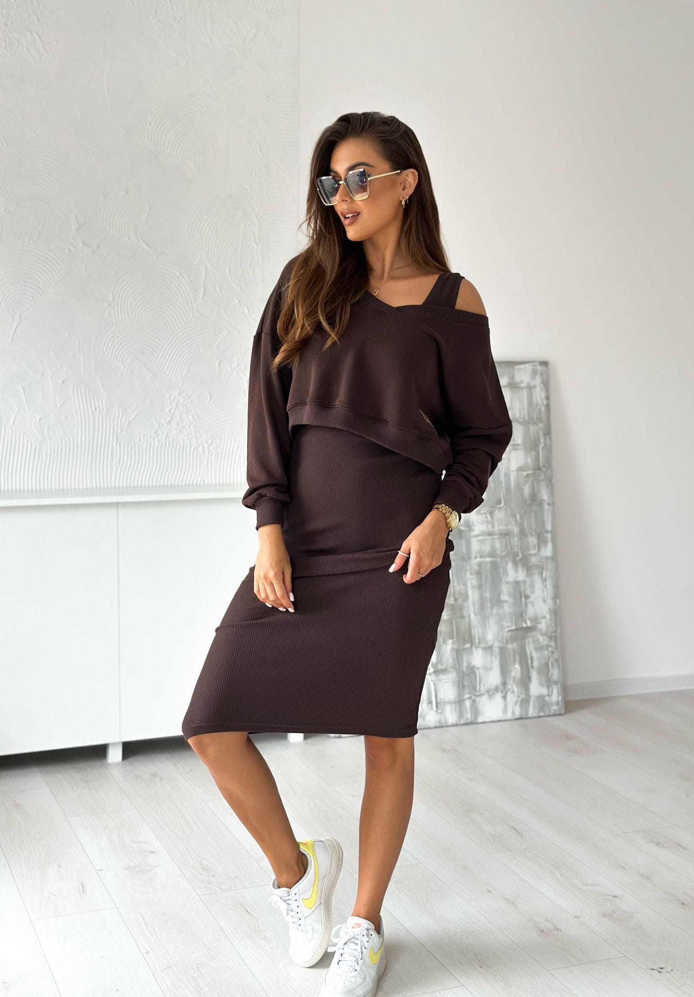 Komplet damski sukienka z bluzą Milagros - czekolada
