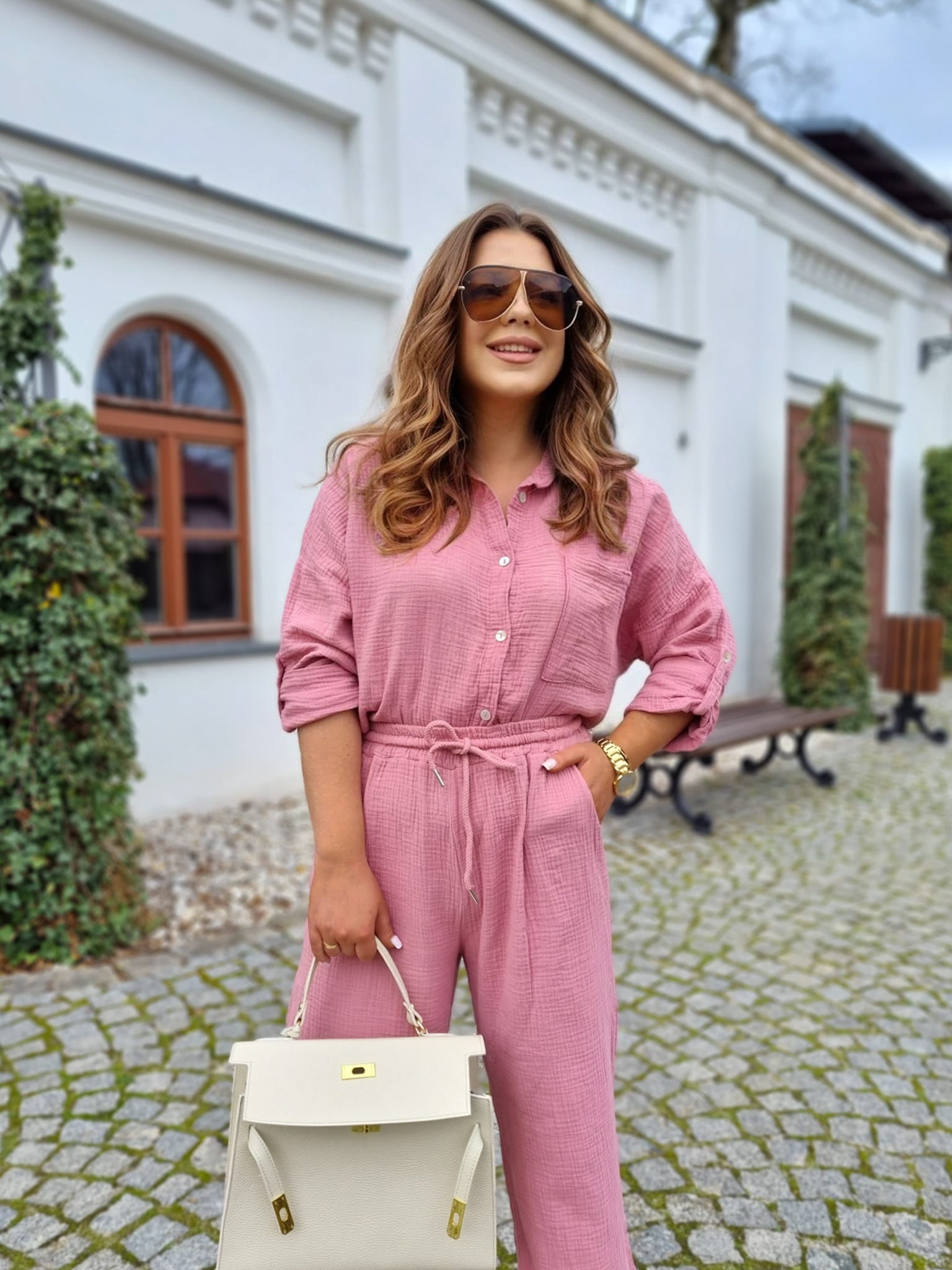 Komplet który pokochasz od razu! Materiał oddycha, bawełna. Idealny na każdą okazję, tego zakupu nie pożałujesz. Spodnie z kieszeniami.