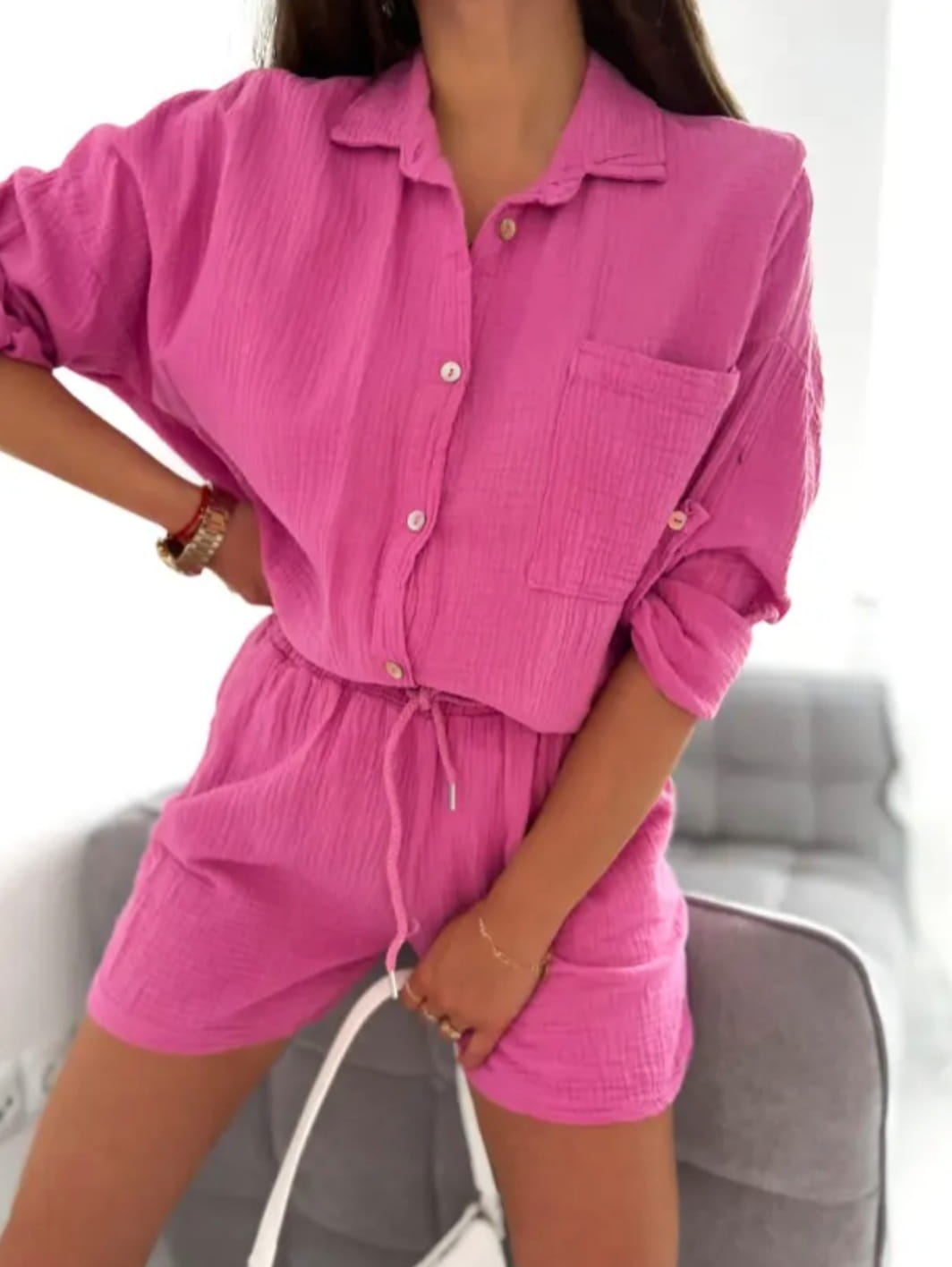 Komplet który pokochasz od razu! Materiał oddycha, bawełna. Idealny na każdą okazję, tego zakupu nie pożałujesz. Spodenki z kieszeniami.