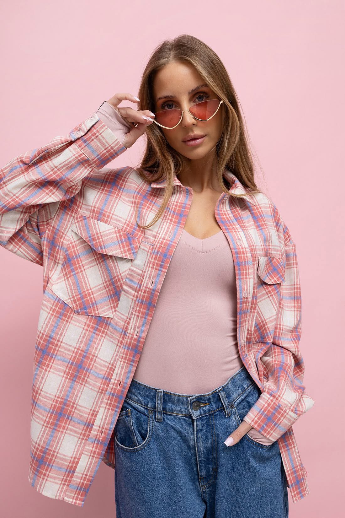 Koszula damska flanelowa w kratę Marry -róż/niebieski/biel