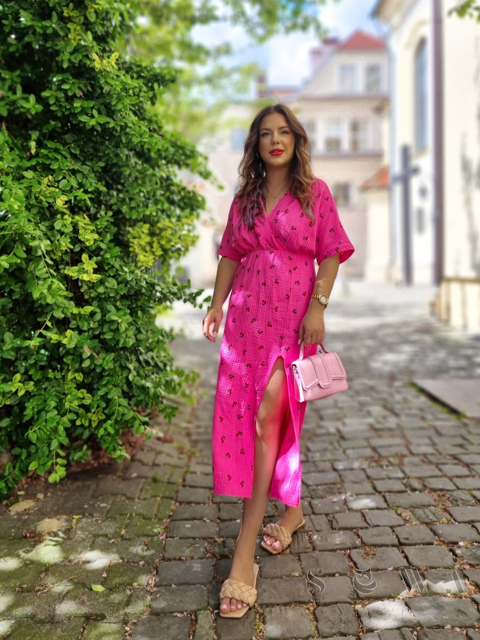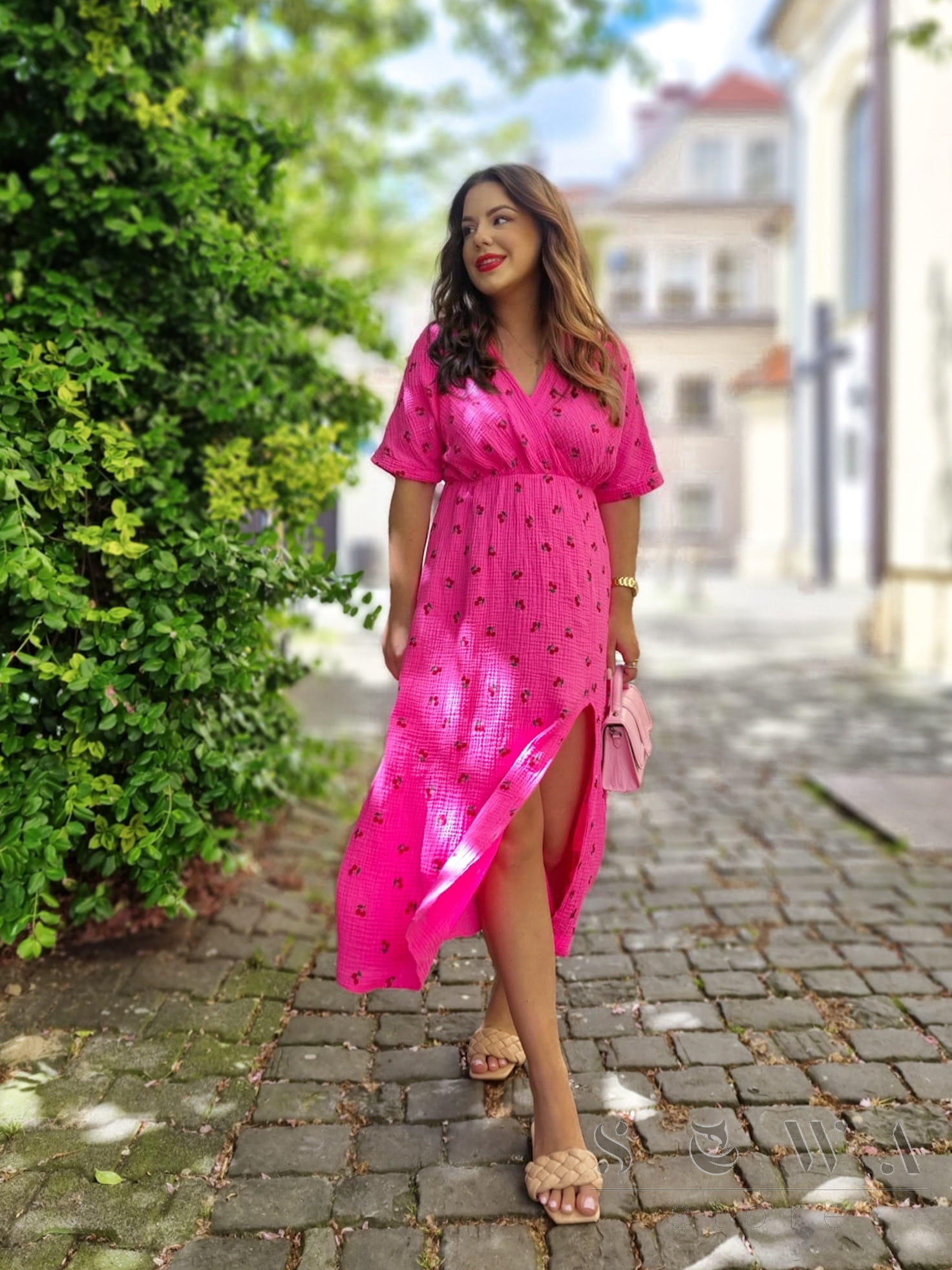 Sukienka damska muślinowa Astra2 Wiśnie (fuksja)