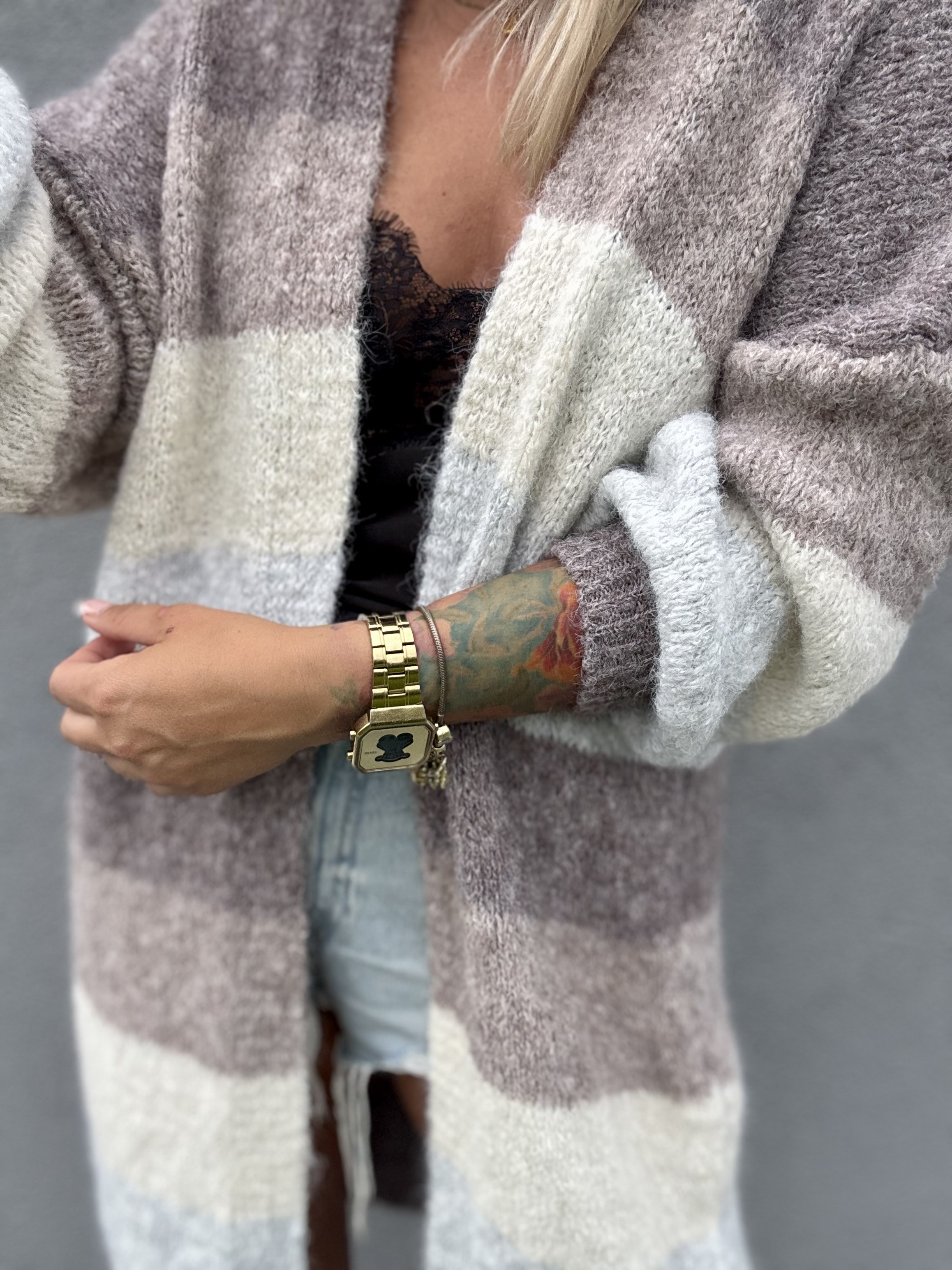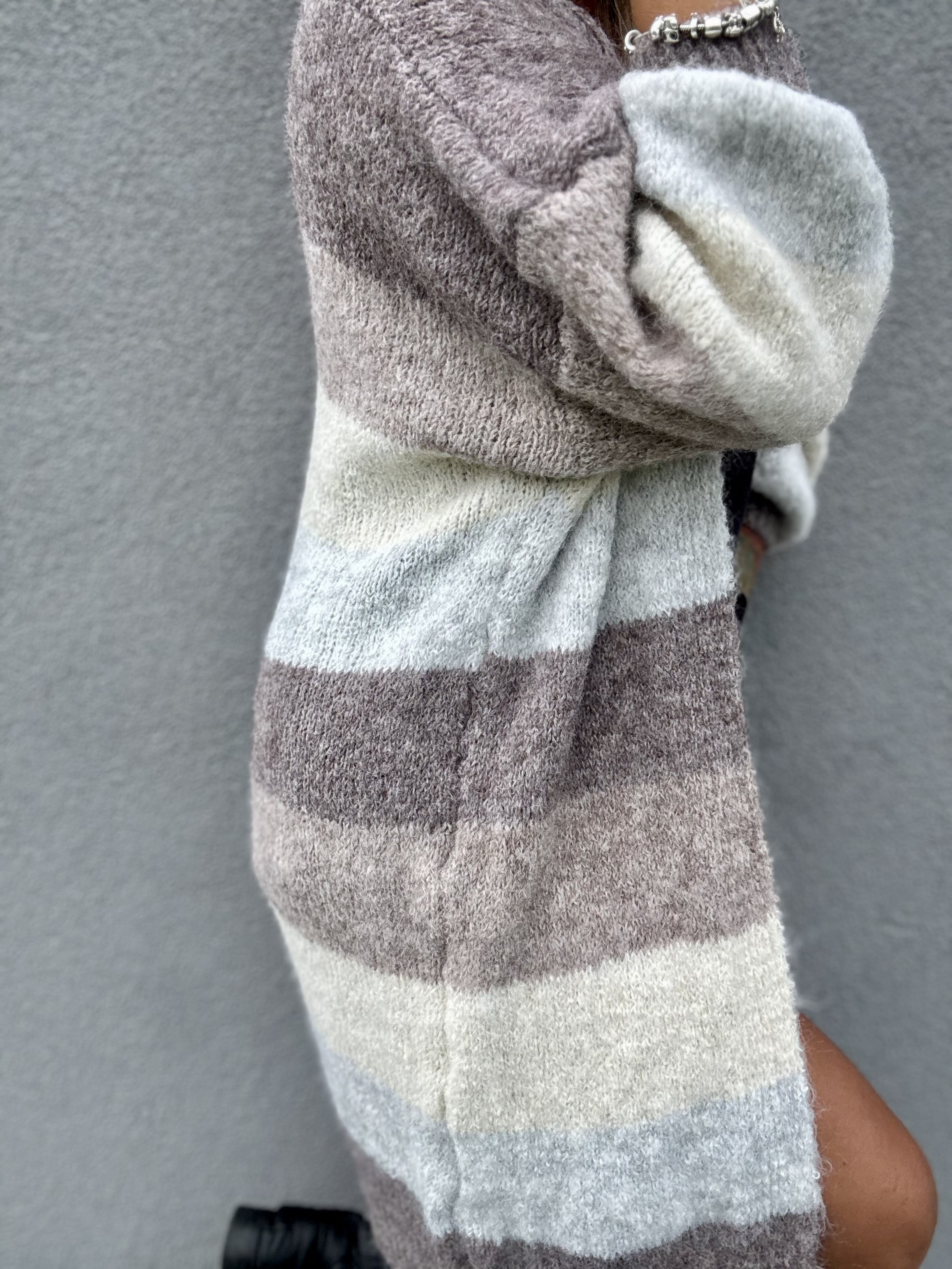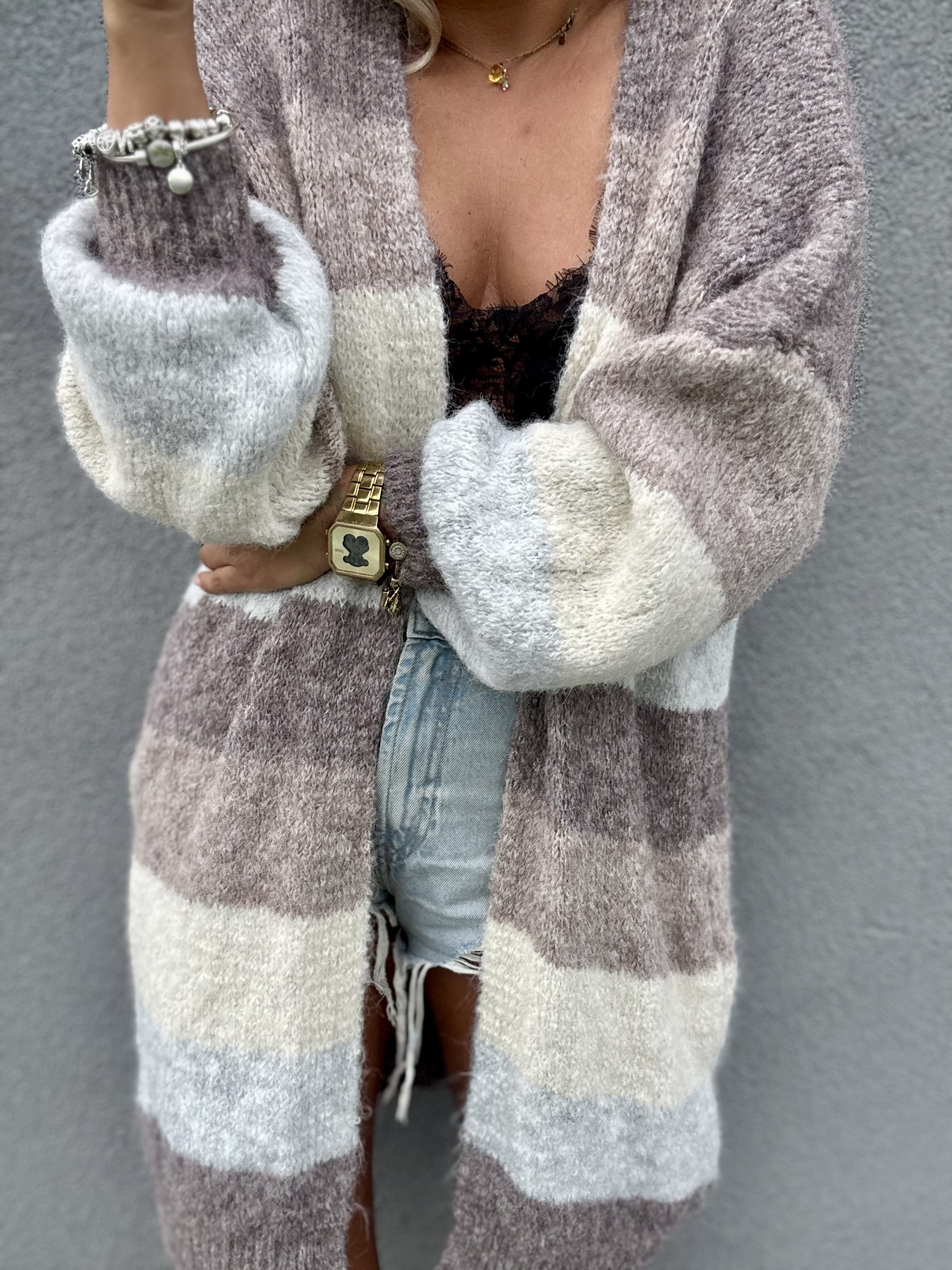 Sweter / kardigan damski długi Maja - ecru/szary/fango