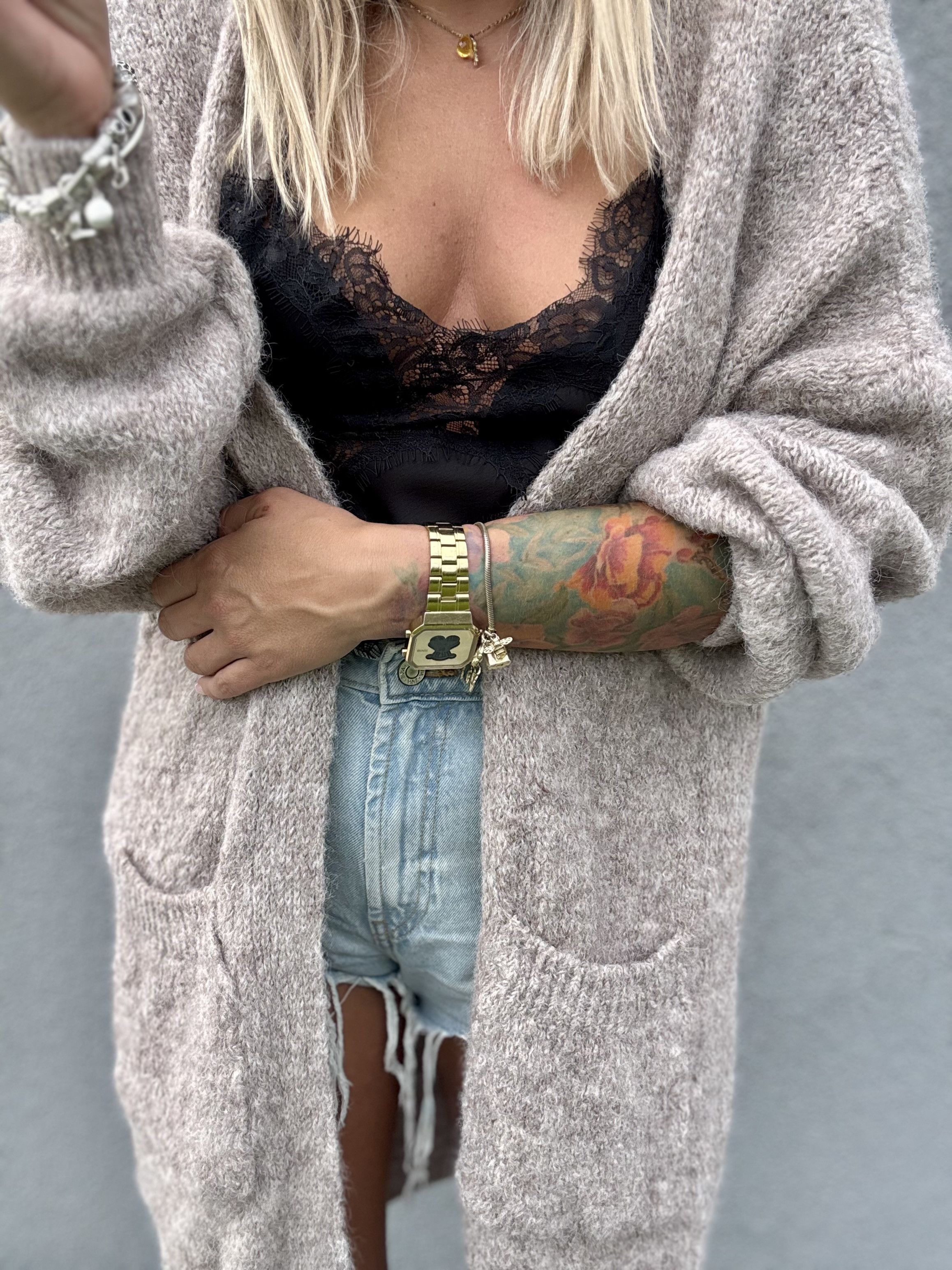 Sweter / kardigan damski midi z kieszeniami Lisa - beż